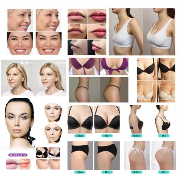 | Treatment Parts | Correction of thin lines, accross the forehead and around the eyes and mouth. | Treatment of wrinkles and lip enhancement | Correcting deep folds, creating fuller lips and shaping facial contours, such as cheeks and chin. | Enlargement of breast and buttock augmentation. |